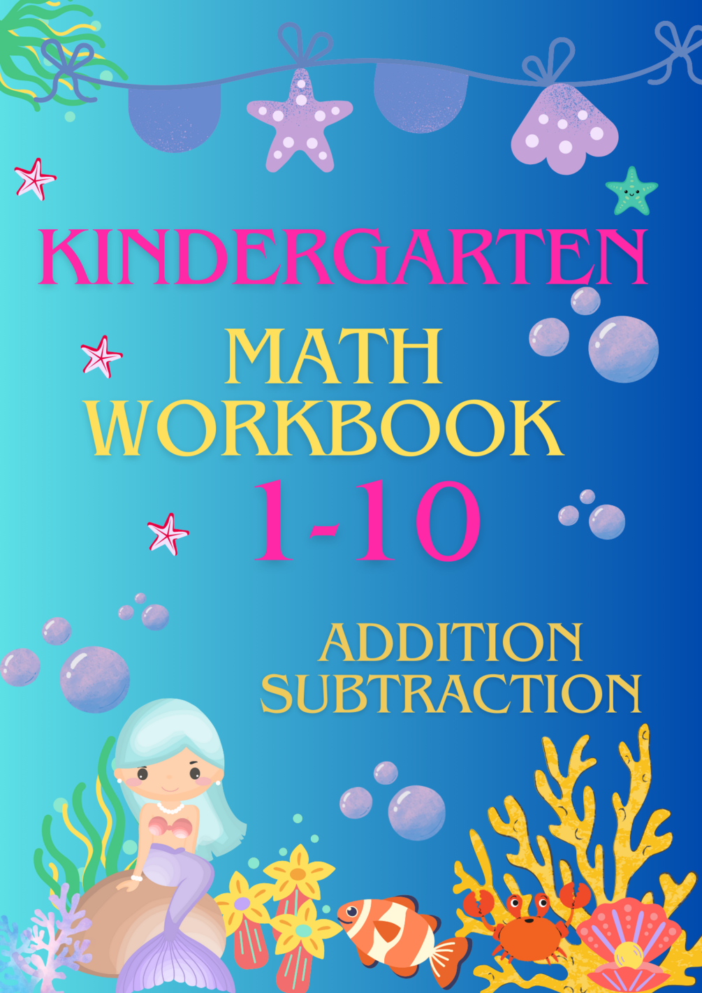 Under the sea-themed. Printable 30-page Math workbook for kindergarten children.